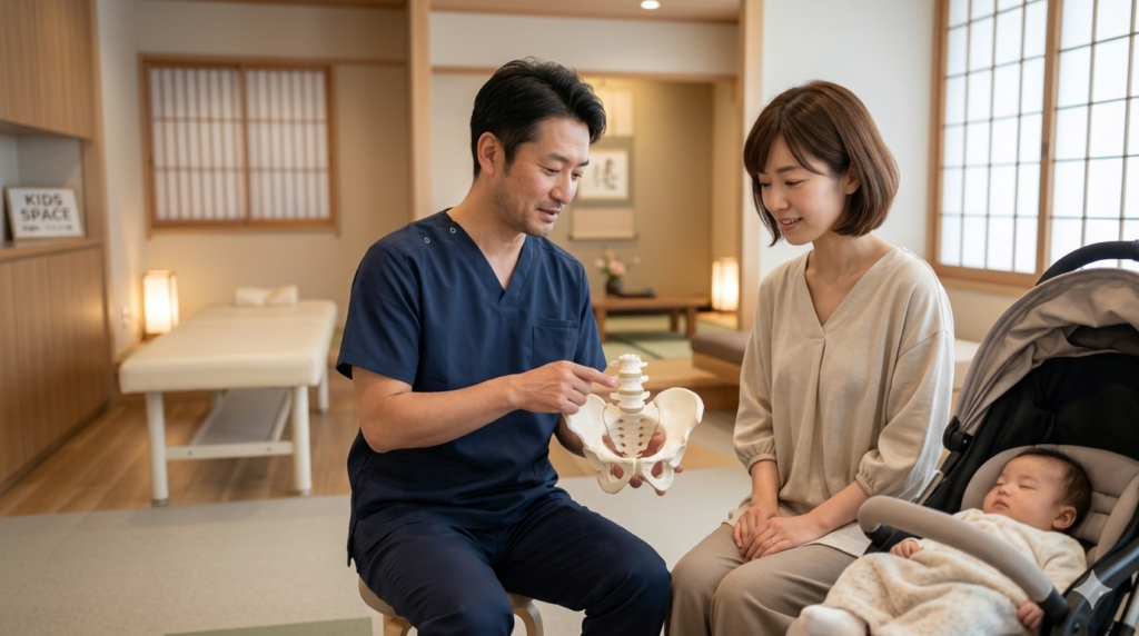 出産で開いた骨盤は、通常半年ほどかけて戻っていきます。しかし、その間に不自然な姿勢での抱っこや授乳を続けると、骨盤が歪んだ状態で固まってしまいます。これを放置すると、慢性的腰痛だけでなく、**「産後太り」「尿漏れ」「冷え性」**といったトラブルを引き起こす原因にもなります。「いつか治るだろう」ではなく、今のうちに適切なケアをすることが、10年後のあなたの健康を守ることに繋がります。